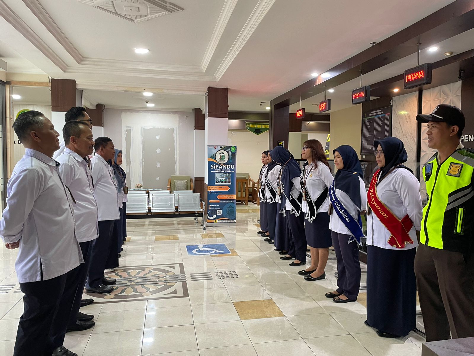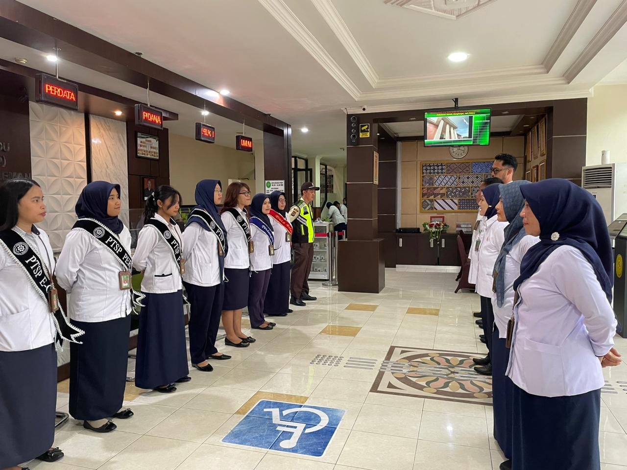 Senin, 1 Desember 2025 dilaksanakan Briefing Pagi petugas PTSP Pengadilan Negeri Sleman dihadiri oleh Hakim Pengawas PTSP, Panitera, Sekretaris dan Para Pejabat Struktural. Kegiatan ini dilaksanakan untuk melakukan koordinasi, monitoring evaluasi pelaksanaan pelayanan di PTSP, dan untuk selalu mengingatkan kepada para petugas PTSP agar selalu memberikan pelayanan yang terbaik bagi para tamu PTSP, tidak menerima imbalan berupa apapun, serta selalu menerapkan 5S (Senyum, Sapa, Salam,Sopan,Santun).
