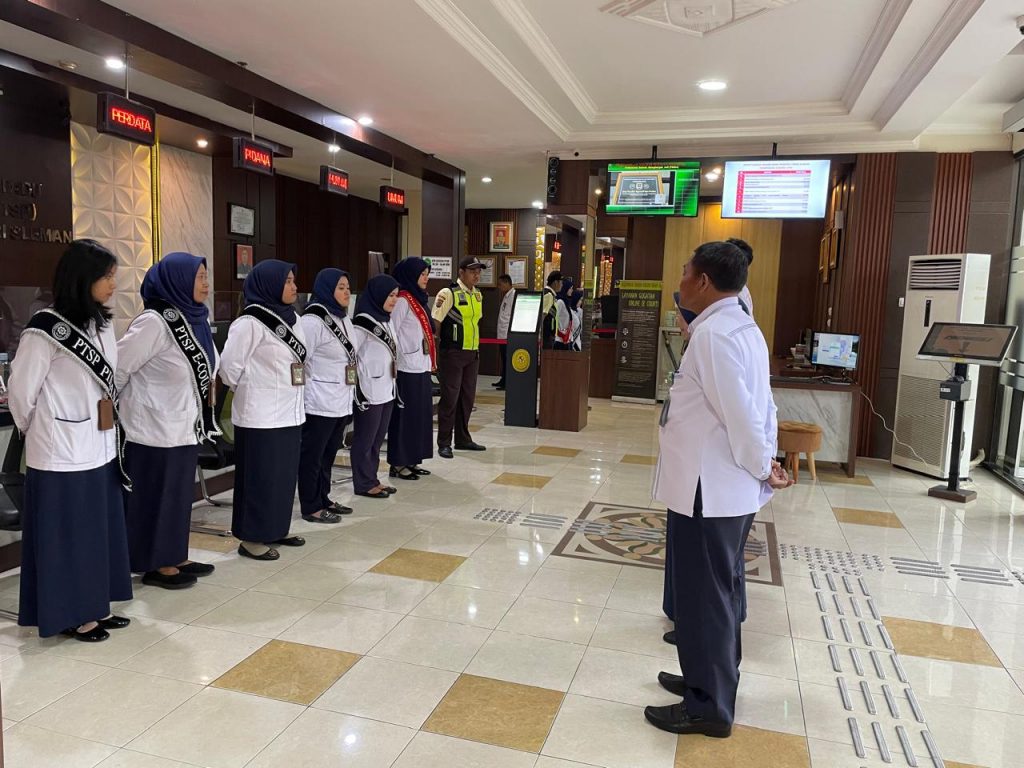 Senin, 9 Februari 2026 dilaksanakan Briefing Pagi petugas PTSP Pengadilan Negeri Sleman dihadiri oleh Hakim Pengawas PTSP, Panitera dan Para Pejabat Struktural. Kegiatan ini dilaksanakan untuk melakukan koordinasi, monitoring evaluasi pelaksanaan pelayanan di PTSP, dan untuk selalu mengingatkan kepada para petugas PTSP agar selalu memberikan pelayanan yang terbaik bagi para tamu PTSP, tidak menerima imbalan berupa apapun, serta selalu menerapkan 5S (Senyum, Sapa, Salam,Sopan,Santun).