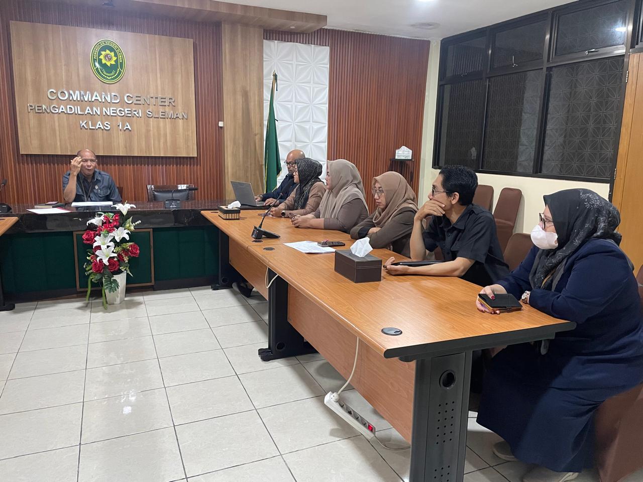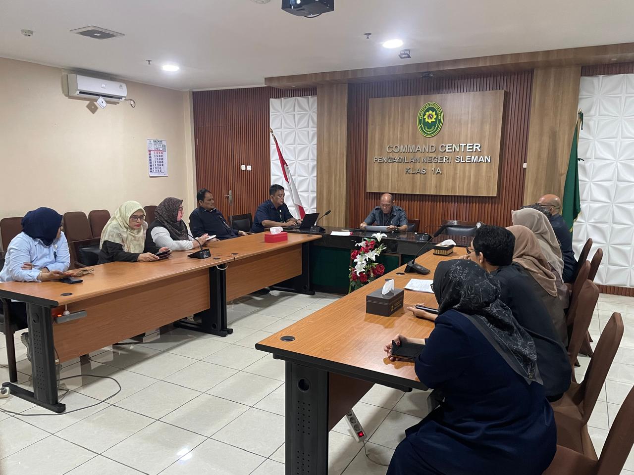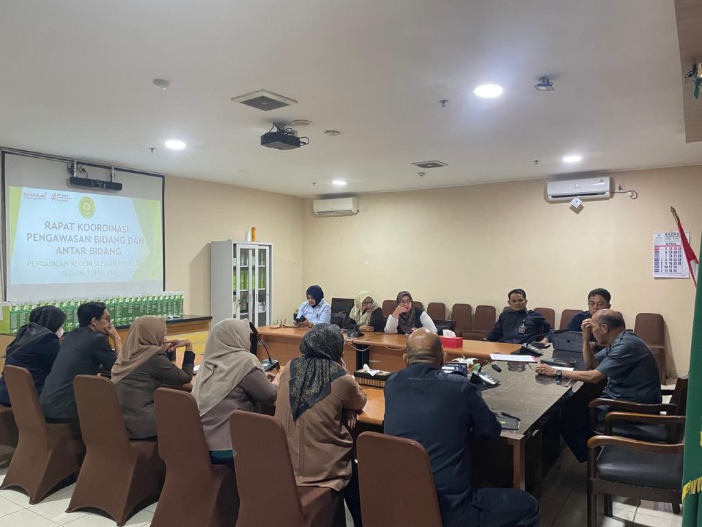 Selasa, 7 April 2026 dilaksanakan Rapat Koordinasi Hakim Pengawas Bidang dan Hakim Pengawas Antar Bidang bertempat di Ruang Commend Center . Rapat dipimpin oleh Wakil Ketua Pengadilan Negeri Sleman, Bapak Agung Nugroho, S.H.,M.H dan diikuti oleh Para Hakim Pengawas Bidang dan Hakim Pengawas Antar Bidang Pengadilan Negeri Sleman. Dalam rapat tersebut dibahas terkait pengawasan yang dilakukan pada masing-masing bidang.