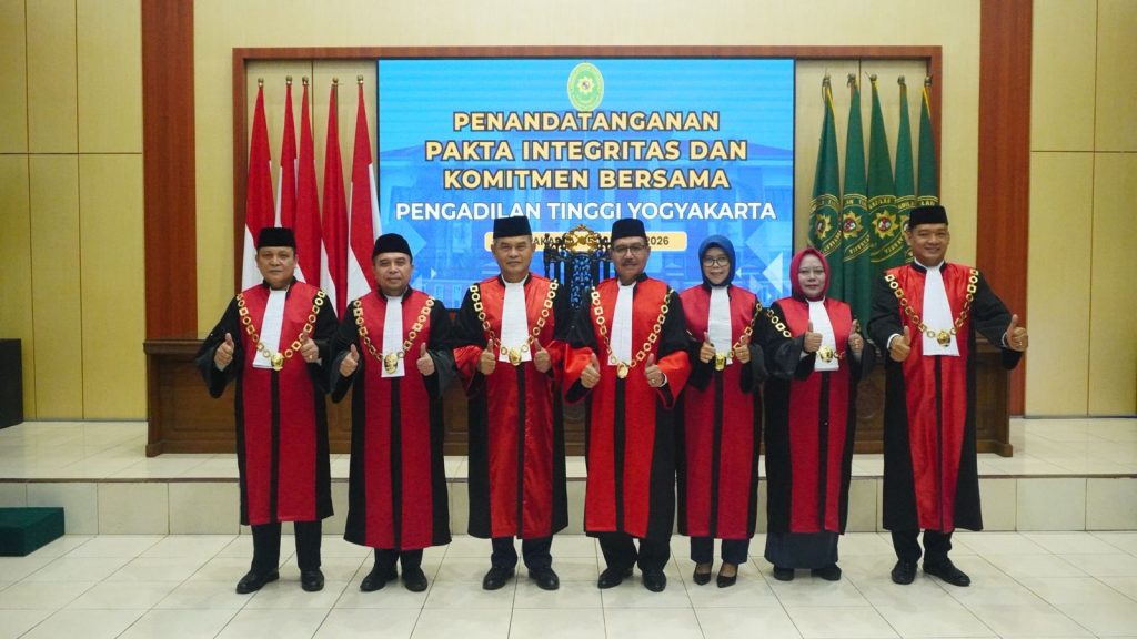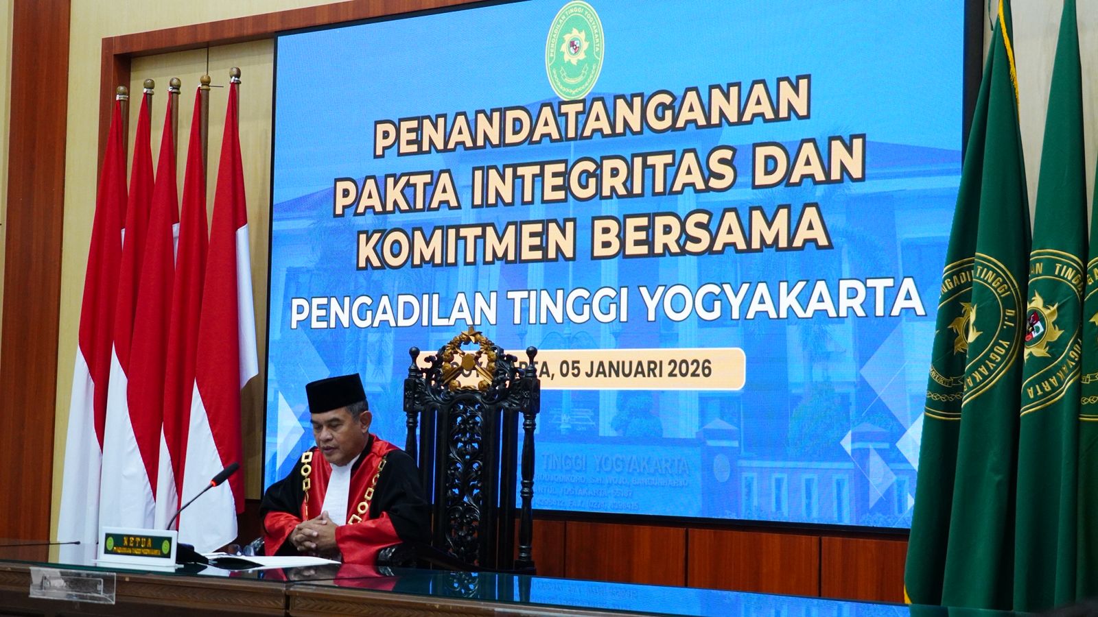 Senin, 5 Januari 2026 Bertempat di Ruang Sidang Utama Pengadilan Tinggi Yogyakarta, Ketua Pengadilan Negeri Sleman Ibu Wari Juniati S.H., M.H menghadiri acara Penandatanganan Pakta Integritas dan Komitmen Bersama Ketua Pengadilan Negeri Se-Wilayah Hukum Pengadilan Tinggi Yogyakarta. Kegiatan ini dipimpin langsung oleh Ketua Pengadilan Tinggi Yogyakarta, Bapak Prof. Dr. H. Herri Swantoro, S.H., M.H.