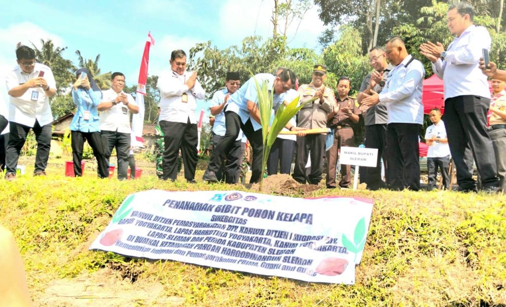 Ketua PN Sleman menghadiri acara Penanaman Bibit Pohon Kelapa dalam tema kegiatan : “Pemasyarakatan Pasti Bermanfaat Untuk Masyarakat.”