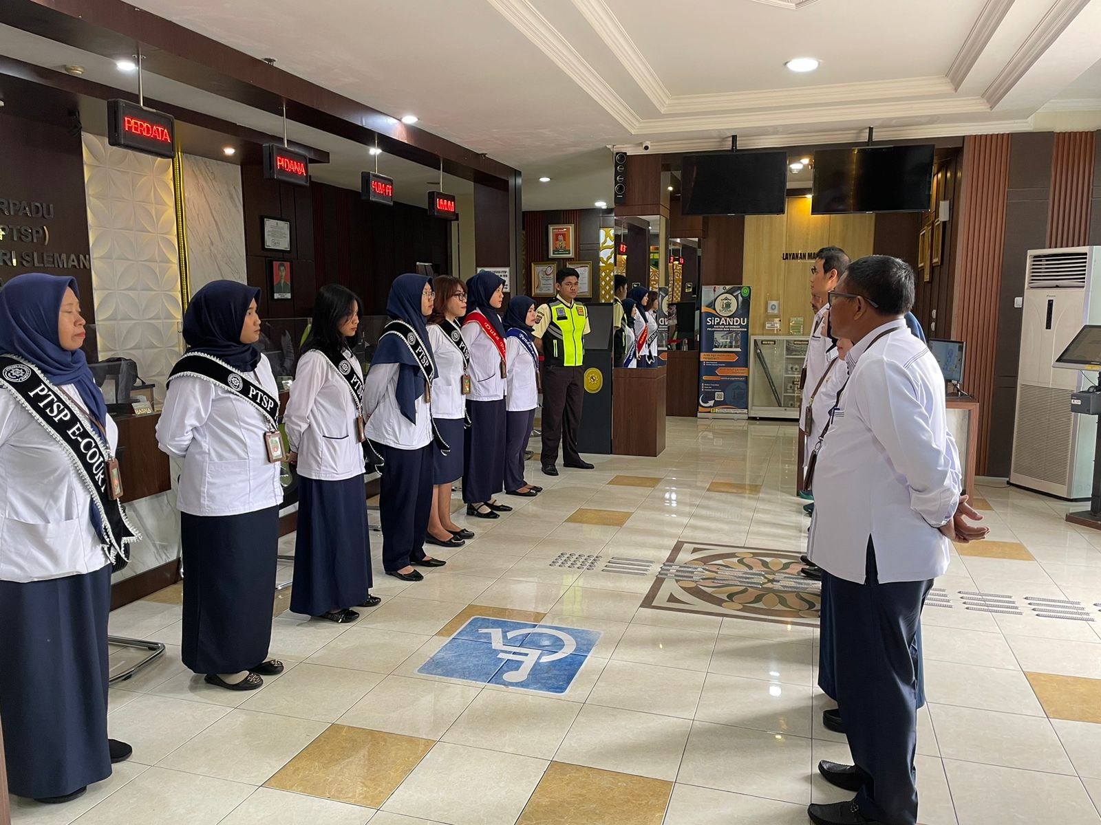 Senin, 22 Desember 2025 dilaksanakan Briefing Pagi petugas PTSP Pengadilan Negeri Sleman dihadiri oleh Hakim Pengawas PTSP, Panitera dan Para Pejabat Struktural. Kegiatan ini dilaksanakan untuk melakukan koordinasi, monitoring evaluasi pelaksanaan pelayanan di PTSP, dan untuk selalu mengingatkan kepada para petugas PTSP agar selalu memberikan pelayanan yang terbaik bagi para tamu PTSP, tidak menerima imbalan berupa apapun, serta selalu menerapkan 5S (Senyum, Sapa, Salam,Sopan,Santun).
