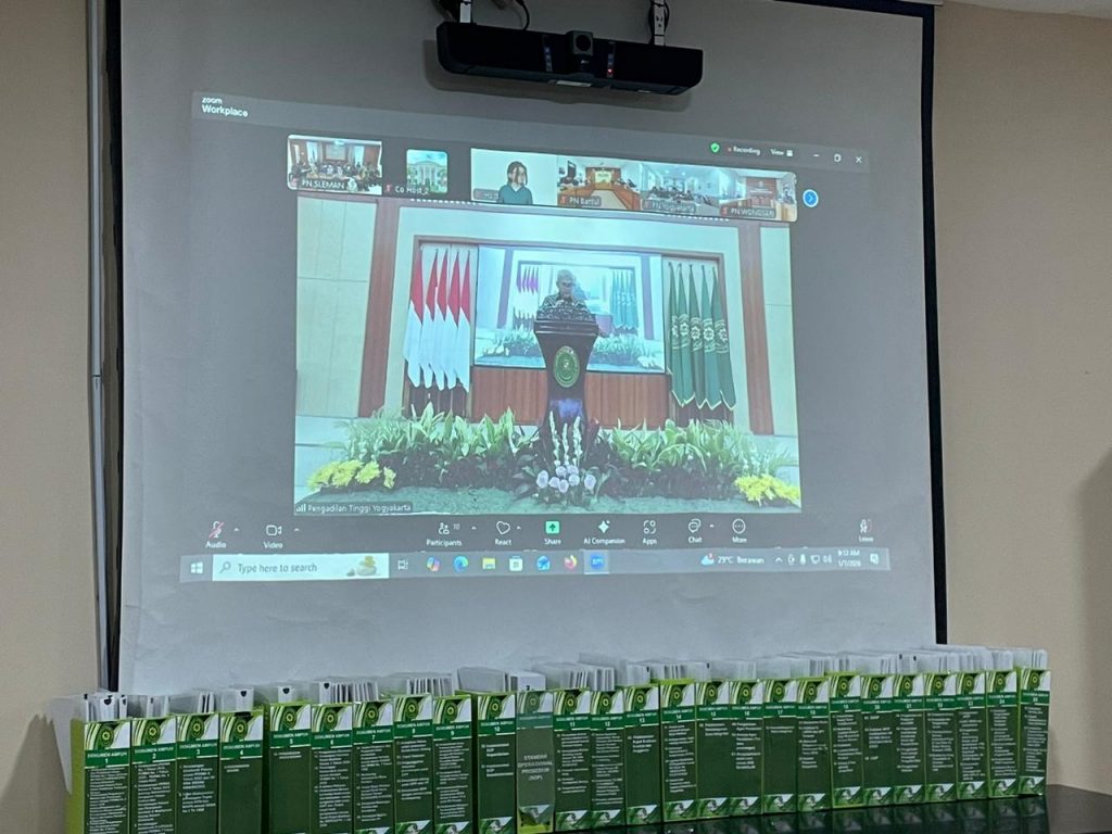 Rabu, 7 Januari 2026 memenuhi undangan dari Pengadilan Tinggi Yogyakarta Nomor : 5/WKPT.W13-U/UND.HM3.1.3/I/2026, bertempat di Ruang Command Center Pengadilan Negeri Sleman, Wakil Ketua Pengadilan Negeri Sleman Bapak Agung Nugroho S.H., M.H, di dampingi para Hakim,Pejabat Struktural,beserta para ASN Pengadilan Negeri Sleman mengikuti acara Refleksi Kinerja Pengadilan Tinggi Yogyakarta Tahun 2025 yang dilaksanakan secara online melalui Zoom Meting. Acara Refleksi Kinerja tersebut dipimpin langsung oleh Ketua Pengadilan Tinggi Yogyakarta Bapak Prof. Dr. H.Herri Swantoro,S.H., M.H. yang memaparkan tentang Performa Kinerja Tahun 2025 dan Rencana Kerja Tahun 2026 pada Pengadilan tinggi Yongyakarta dan Pengadilan Negeri Se- Wilayah Hukum Pengadulan Tinggi Yogyakarta.