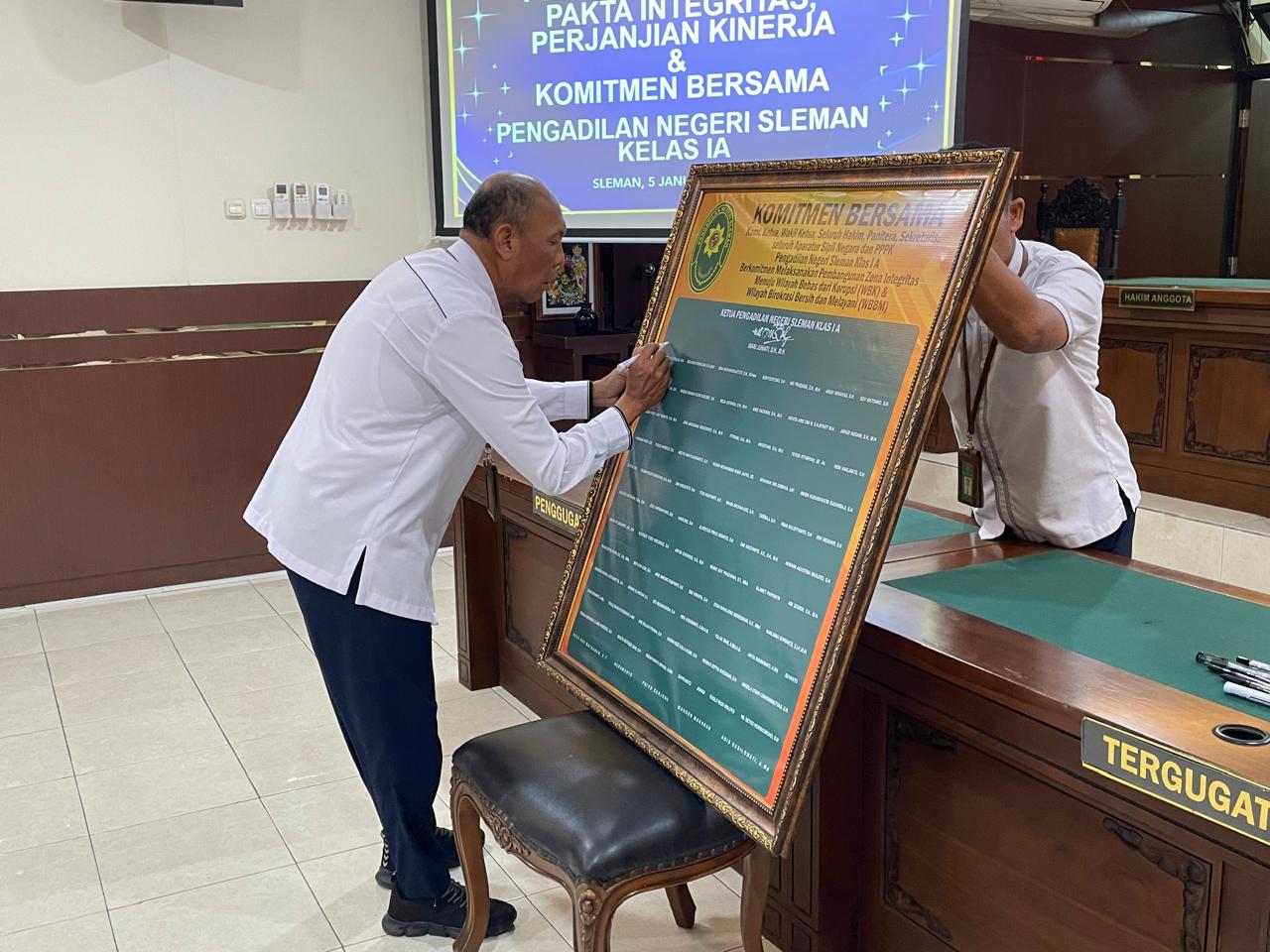 Senin, 5 Januari 2026 Pengadilan Negeri Sleman melaksanakan mengadakan acara Pengucapan dan Penandatanganan Pakta Integritas, dan Komitmen Bersama bertempat di Ruang Sidang Utama Pengadilan Negeri Sleman.
