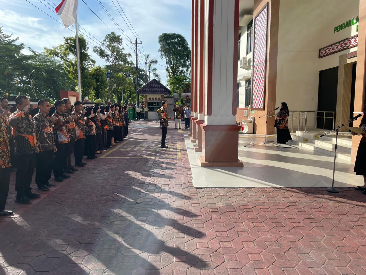 Senin,5 Januari 2026 dilaksanakan apel pagi di halaman Pengadilan Negeri Sleman. Apel diikuti oleh, Ketua,Wakil Ketua Para Hakim, Para Pejabat Struktural, Para Pejabat Fungsional, Staf, dan PPPK Pengadilan Negeri Sleman. Bertindak sebagai Pembina Apel yaitu Hakim Pengadilan Negeri Sleman , Ibu Fitriani S.H.,MH Kegiatan apel ini dilaksanakan sebagai bentuk upaya dalam menanamkan kedisiplinan dan meningkatkan semangat kerja di awal pekan, sekaligus sebagai sarana untuk menyampaikan arahan dari pimpinan yang menjadi pedoman bagi seluruh aparatur Pengadilan dalam melaksanakan tugas dan tanggung jawab. Dalam kesempatan tersebut, Pembina Apel mengingatkan kembali pentingnya menjaga integritas sebagai aparat peradilan.
