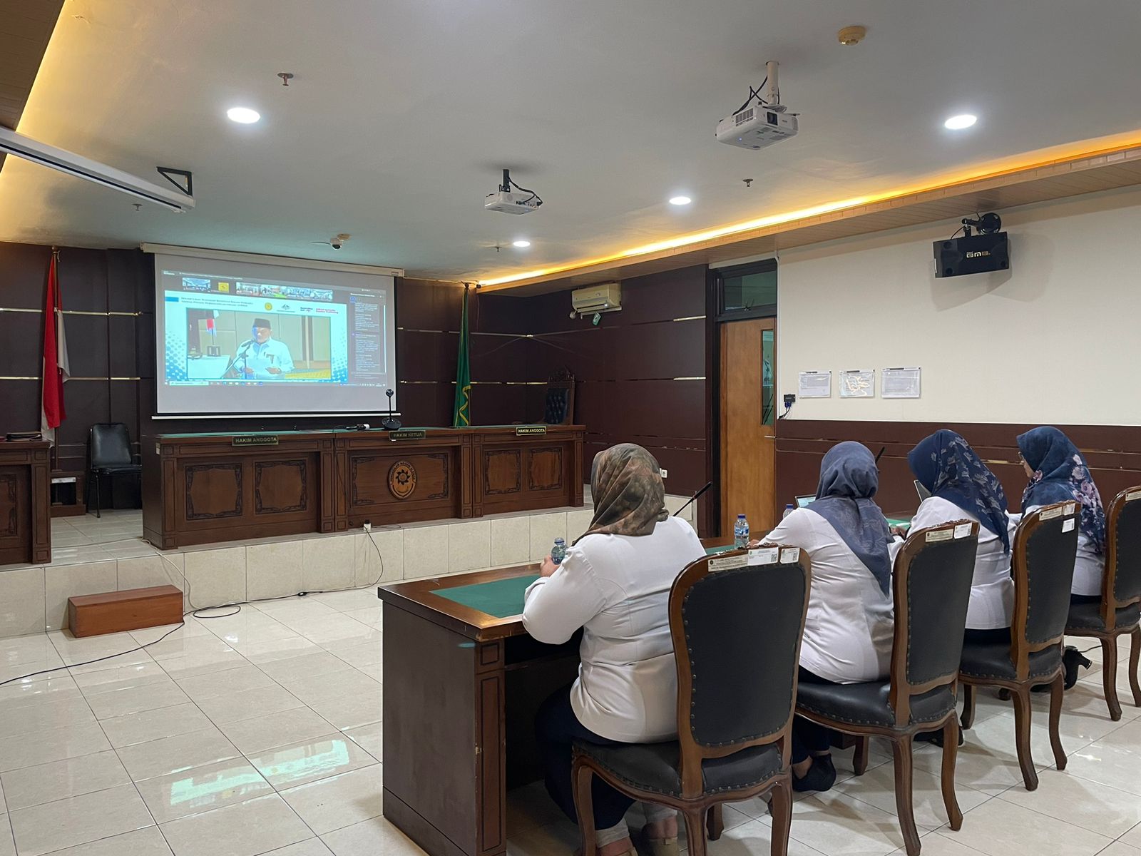 Senin, 13 April 2026 bertempat di Ruang Sidang Utama, memenuhi Undangan Wakil Ketua Mahkamah Agung Bidang Yudisial Nomor 56/WKMA.Y/UND.HM2.1/III/2026, Ketua Pengadilan Negeri Sleman Ibu Wari Juniati,S.H.M.H didampingi oleh para hakim Pengadilan Negeri Sleman menghadiri acara Peluncuran Buku Pedoman Restitusi dalam Perkara Tindak Pidana Perdagangan Orang (TPPO) secara daring melalui zoom meeting. Acara ini dilaksanakan Sebagai tindak lanjut atas ditetapkannya Peraturan Mahkamah Agung Nomor Tahun 2022 tentang Tata Cara Penyelesaian Permohonan dan Pemberian Restitusi dan Kompensasi kepada Korban Tindak Pidana, Mahkamah Agung Republik Indonesia dengan dukungan Pemerintah Australia melalui Program ASEAN-Australia Counter Trafficking (ASEAN-ACT) dan Australia-Indonesia Partnership for Justice Phase 3 (AIPJЗ).