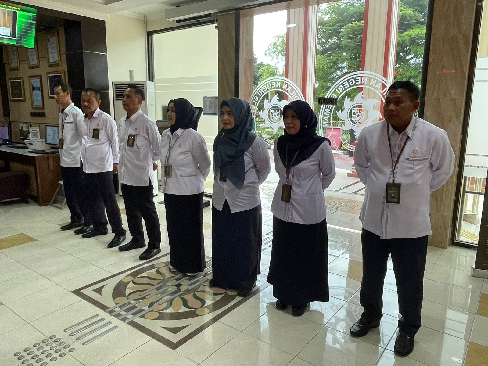 Jum’at, 12 Desember 2025 diadakan apel sore di halaman Pengadilan Negeri Sleman. Apel diikuti oleh Para Hakim, Para Pejabat Struktural, Para Pejabat Fungsional, Staf, dan PPPK Pengadilan Negeri Sleman. Bertindak sebagai Pembina Apel yaitu Hakim PN Sleman Bapak Jayadi Husain, S.H., M.H., dalam apel tersebut disampaikan tentang pentingnya kepatuhan dalam penginputan SIPP, peningkatan kualitas pelayanan publik, menjaga profesionalisme, dan menjunjung tinggi integritas sebagai aparatur peradilan.