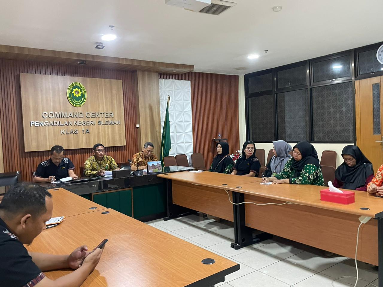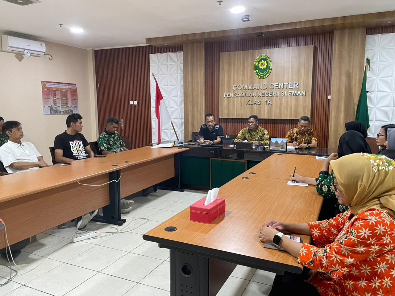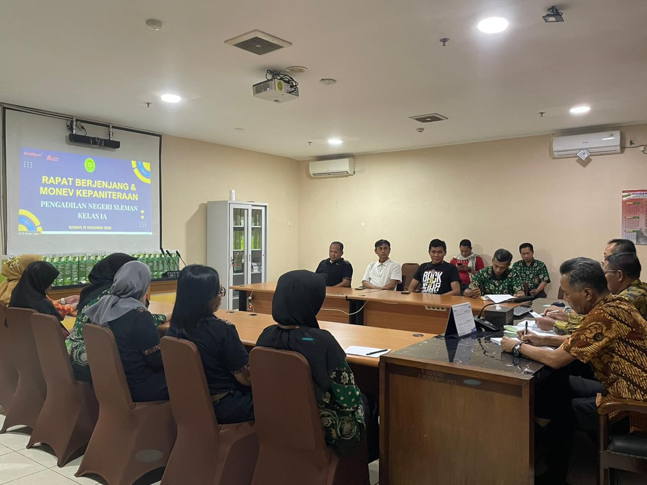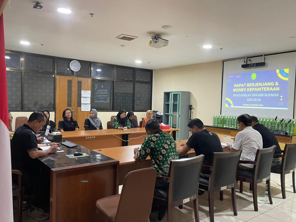 Jum’at, 12 Desember 2025 Pengadilan Negeri Sleman melaksanakan Rapat Berjenjang Kepaniteraan yang dipimpin oleh Panitera Pengadilan Negeri Sleman, Bapak Heri Harjanto, S.H., dan diikuti oleh para Panitera Muda, seluruh Panitera Pengganti, Jurusita dan Jurusita Pengganti. Dalam rapat berjenjang tersebut dibahas kendala yang terjadi dan progres pelaksanaan administrasi perkara yang ada pada Pengadilan Negeri Sleman.
