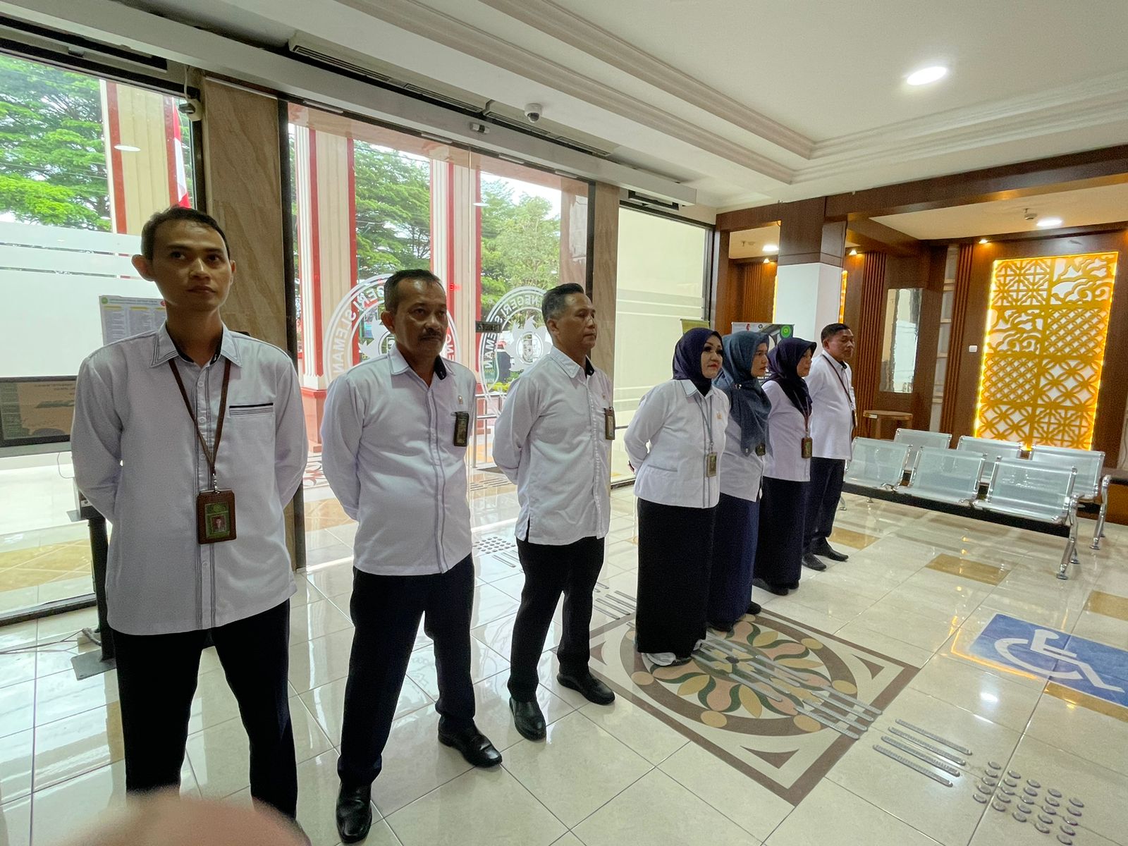 Senin, 15 Desember 2025 dilaksanakan Briefing Pagi petugas PTSP Pengadilan Negeri Sleman dihadiri oleh Hakim Pengawas PTSP, Panitera dan Para Pejabat Struktural. Kegiatan ini dilaksanakan untuk melakukan koordinasi, monitoring evaluasi pelaksanaan pelayanan di PTSP, dan untuk selalu mengingatkan kepada para petugas PTSP agar selalu memberikan pelayanan yang terbaik bagi para tamu PTSP, tidak menerima imbalan berupa apapun, serta selalu menerapkan 5S (Senyum, Sapa, Salam,Sopan,Santun).