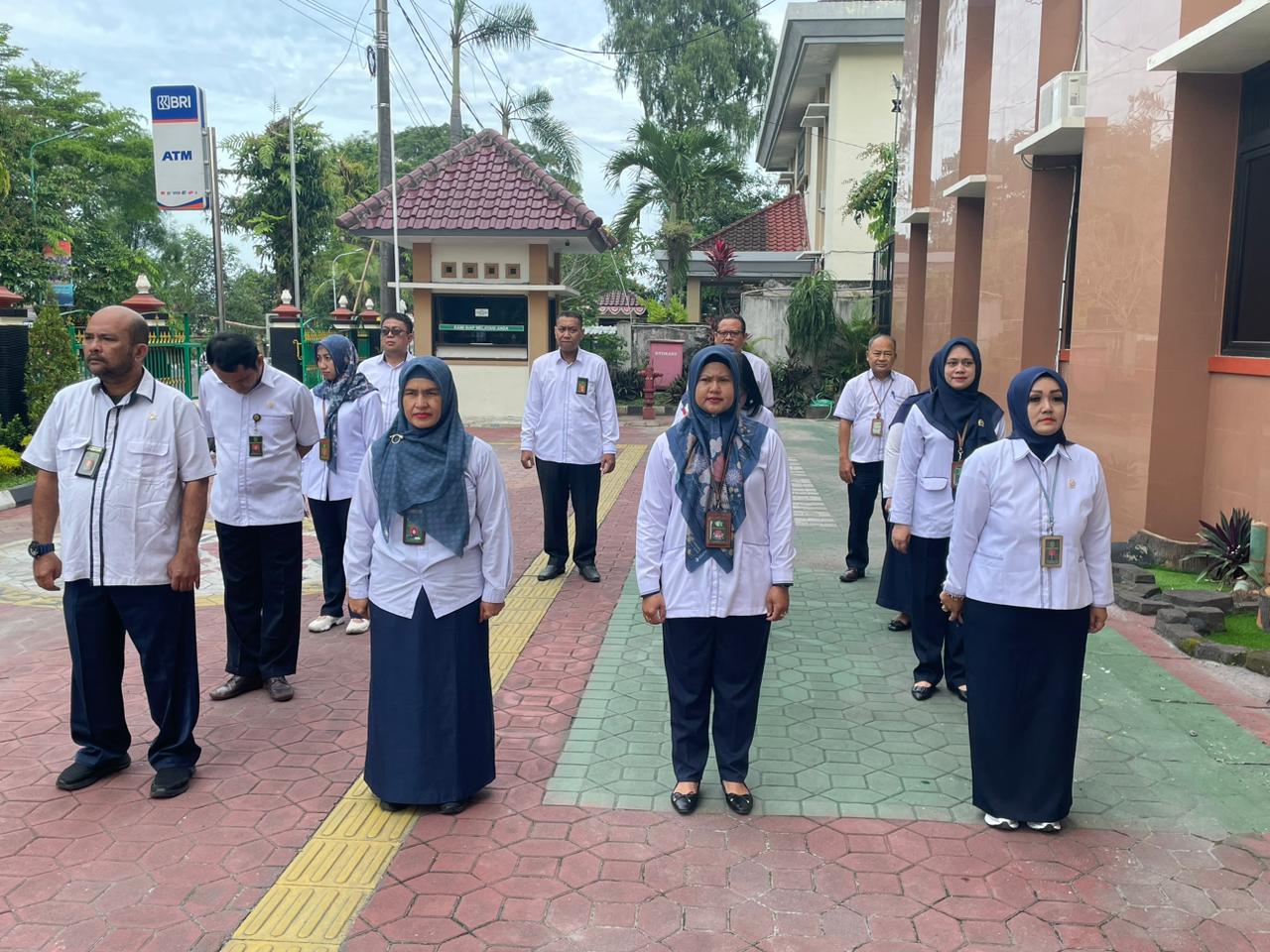 Senin,1 Desember 2025 dilaksanakan apel pagi di halaman Pengadilan Negeri Sleman. Apel diikuti oleh, Wakil Ketua, Para Hakim, Para Pejabat Struktural, Para Pejabat Fungsional, Staf, dan PPPK Pengadilan Negeri Sleman. Bertindak sebagai Pembina Apel yaitu Wakil Ketua Pengadilan Negeri Sleman, Bapak Agung Nugroho,S.H.,M.H . Kegiatan apel ini dilaksanakan sebagai bentuk upaya dalam menanamkan kedisiplinan dan meningkatkan semangat kerja di awal pekan, sekaligus sebagai sarana untuk menyampaikan arahan dari pimpinan yang menjadi pedoman bagi seluruh aparatur Pengadilan dalam melaksanakan tugas dan tanggung jawab. Dalam kesempatan tersebut, Pembina Apel mengingatkan kembali pentingnya menjaga integritas sebagai aparat peradilan