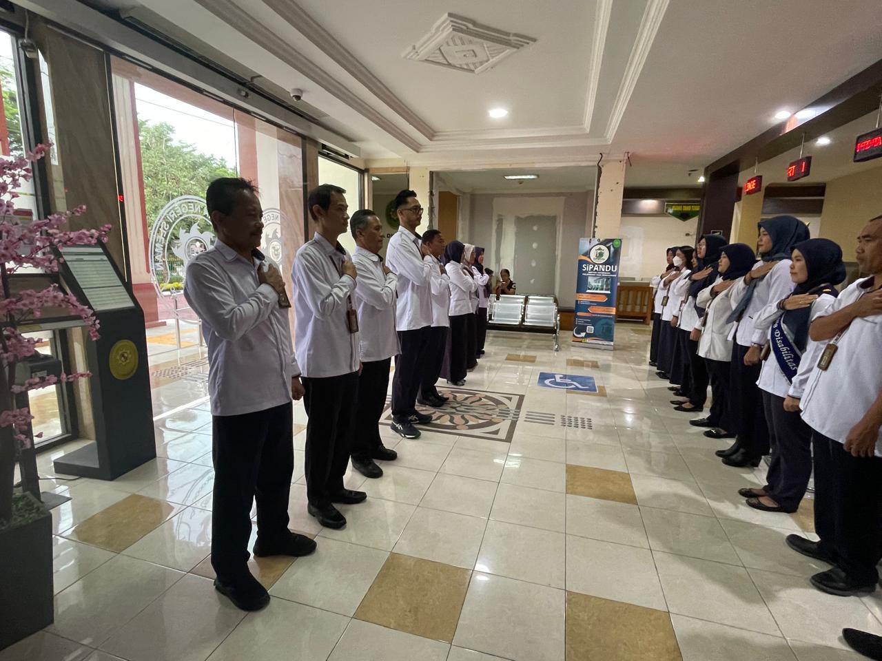 Bertindak sebagai Pembina Upacara Wakil Ketua Pengadilan Negeri Sleman, Bapak Agung Nugroho,S.H.,M.H dan diikuti oleh Para Hakim, Panitera, Para pejabat Struktural, Fungsional, Pelaksana serta para PPPK.