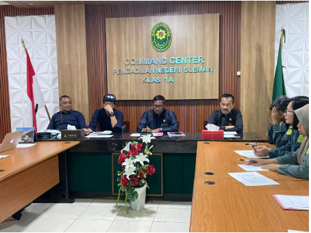 Rabu, 24 September 2025 bertempat di Ruang Command Center, Pengadilan Negeri Sleman melaksanakan Rapat Evaluasi Ekseskusi dan Panggilan yang dipimpin oleh Panitera Pengadilan Negeri Sleman, Bapak Heri Harjanto, S.H. dan diikuti oleh Para Panitera Muda, Para Jurusita dan Jurusita Pengganti. Dalam rapat tersebut dibahas terkait koordinasi pelaksanaan eksekusi dan panggilan kepada para pihak, diharapkan dengan adanya rapat ini dapat mendukung peningkatan kinerja Pengadilan Negeri Sleman dalam penyelesaian perkara yang ada.