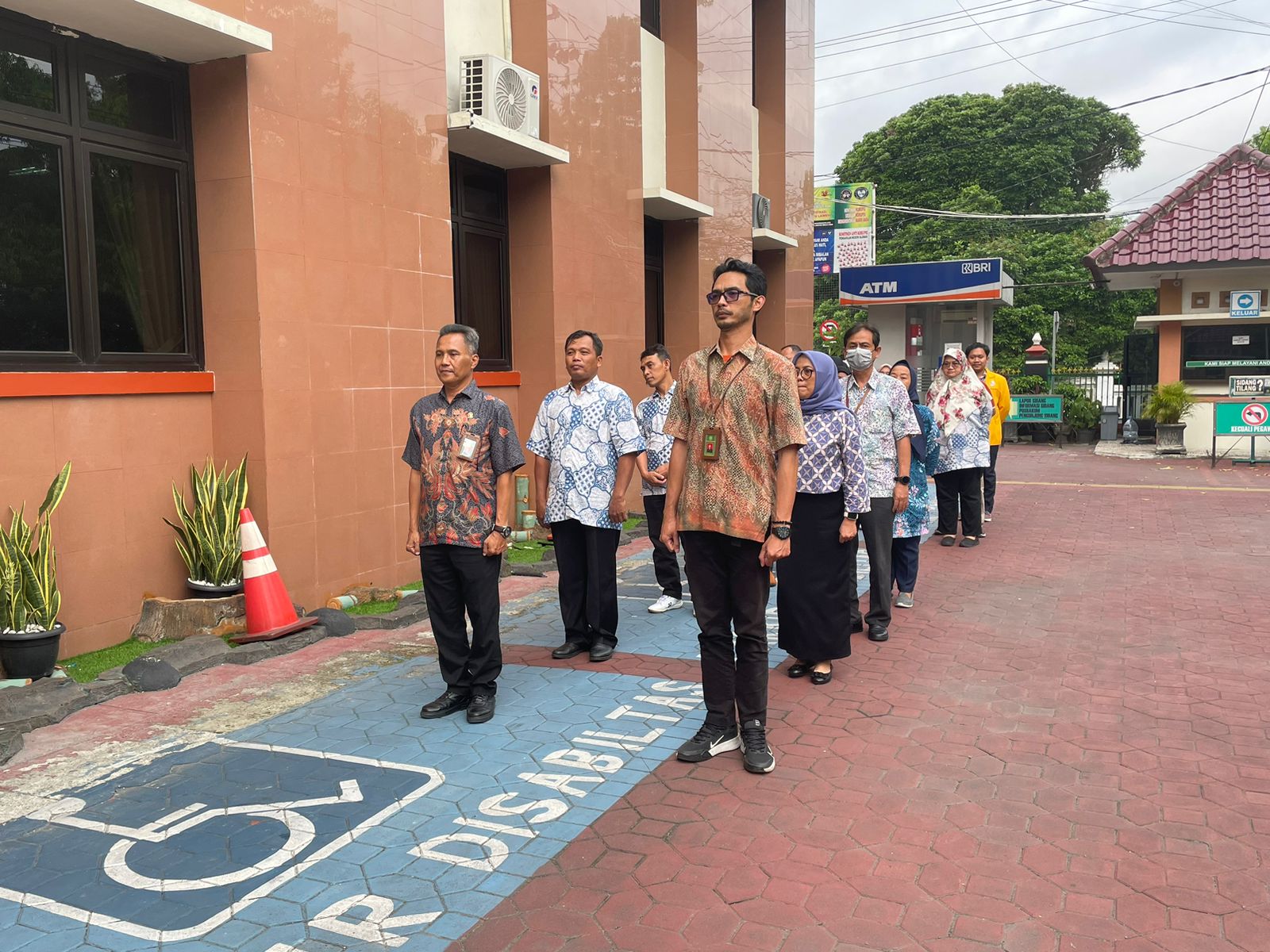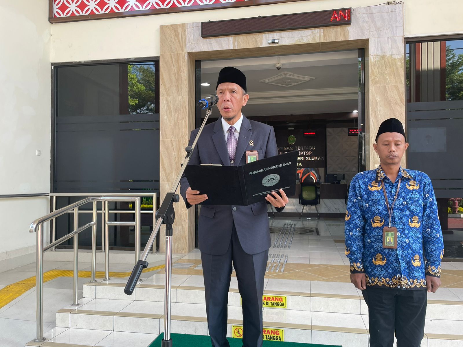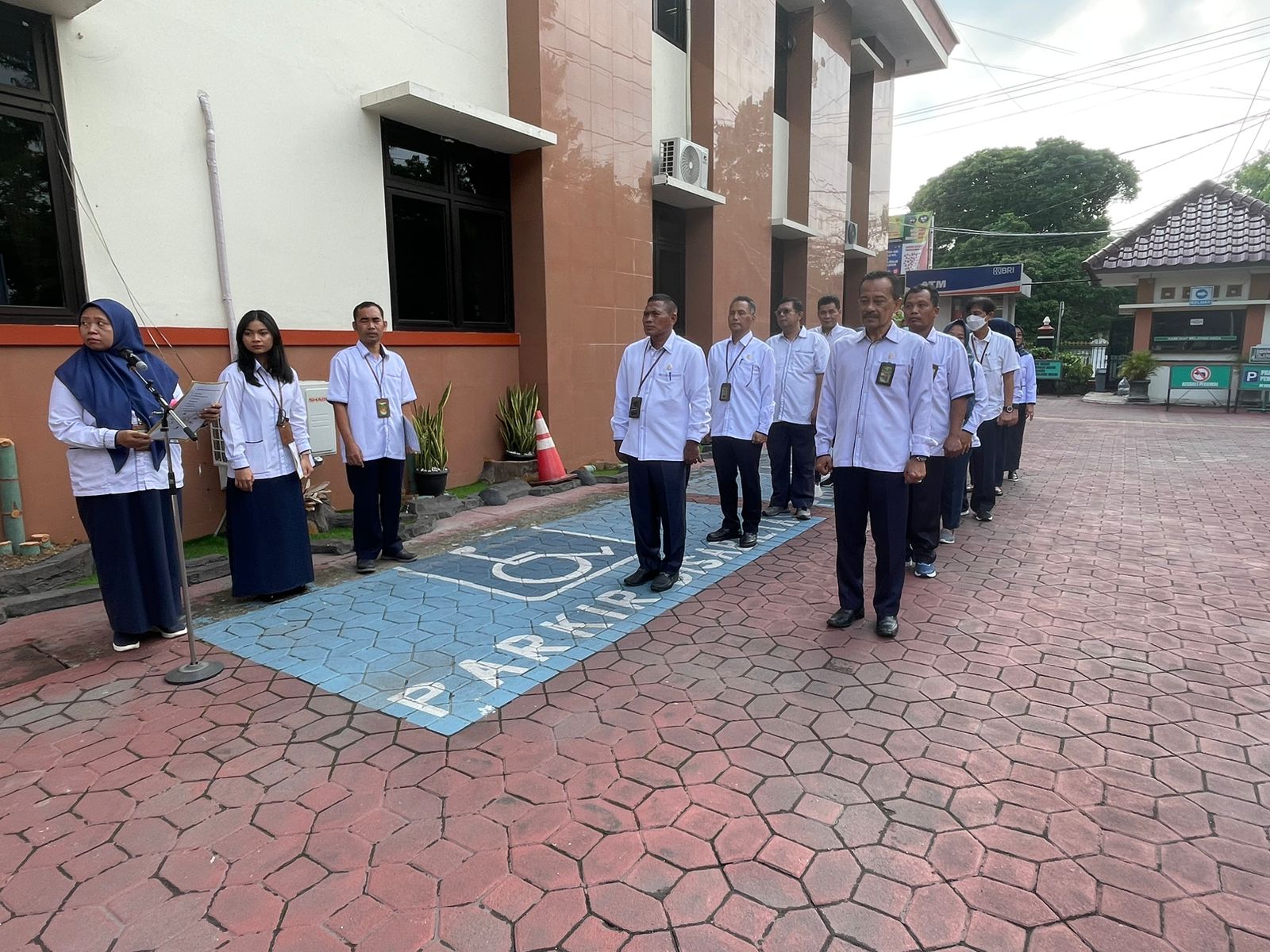 Senin, 6 Oktober 2025 diadakan apel pagi di halaman Pengadilan Negeri Sleman. Apel diikuti oleh Ketua, Wakil Ketua, Para Hakim, Para Pejabat Struktural, Para Pejabat Fungsional, Staf, dan PPPK Pengadilan Negeri Sleman. Bertindak sebagai Pembina Apel yaitu Hakim Pengadilan Negeri Sleman, Bapak Cahyono,S.H.,M.H, . Kegiatan apel ini dilaksanakan sebagai bentuk upaya dalam menanamkan kedisiplinan dan meningkatkan semangat kerja di awal pekan, sekaligus sebagai sarana untuk menyampaikan arahan dari pimpinan yang menjadi pedoman bagi seluruh aparatur Pengadilan dalam melaksanakan tugas dan tanggung jawab. Dalam kesempatan tersebut, Pembina Apel mengingatkan kembali pentingnya menjaga integritas sebagai aparat peradilan, dengan mempedomani Peraturan Mahkamah Agung (Perma) Nomor 7, 8, dan 9 Tahun 2016.