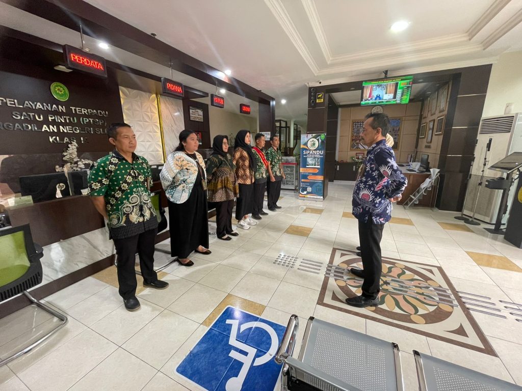 Senin, 6 Oktober 2025 dilaksanakan Briefing Pagi petugas PTSP Pengadilan Negeri Sleman. Dihadiri oleh Hakim Pengawas PTSP, Panitera, Sekretaris, Para Kepala Sub.Bagian dan Para Panitera Muda. Kegiatan ini dilaksanakan untuk melakukan koordinasi, monitoring evaluasi pelaksanaan pelayanan di PTSP, dan untuk selalu mengingatkan kepada para petugas PTSP agar selalu memberikan pelayanan yang terbaik bagi para tamu PTSP, tidak menerima imbalan berupa apapun, serta selalu menerapkan 5S (Senyum, Sapa, Salam,Sopan,Santun).